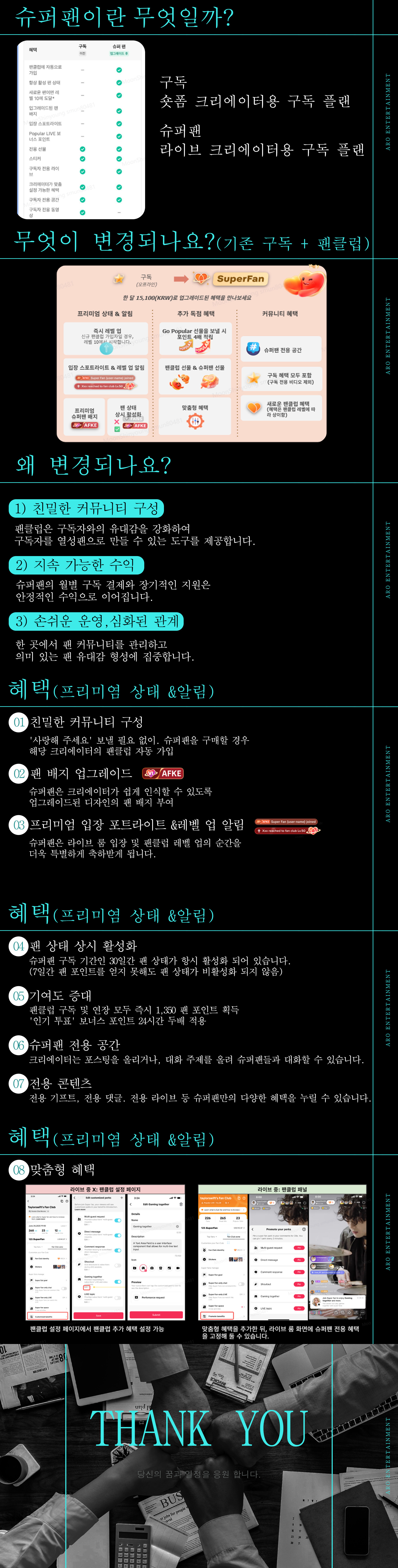 이번에 새롭게 바뀐 슈퍼팬은 라이브 전용 구독 플랜으로 팬클럽과 통합되어 좀더 쉽고 효율적으로 관리 할 수 있으며,
